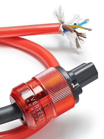Basierend auf dem ultimativen Pulse-HB-Netzkabel verwendet der Redline eine von Vertere entwickelte Mehrleiterkonstruktion für stromführende und neutrale Leiter. Diese sind einzeln doppelt geschirmt und mit einem zusätzlichen Gesamtschirm versehen, der die Leiter Live, Neutral und Erde abdeckt, um die Leistung weiter zu verbessern.